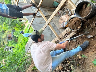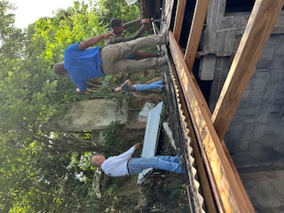 Upon the arrival of the small team from Restore Caribbean Lives, the task of excavating the home and replacing the windows, exterior doors, and roof appeared overwhelming to accomplish within the limited days available to the team. Just getting the building materials to the home was going to be a daunting task. The team was able to engage some of the local young men to help with the delivery of the material and we immediately began to work on the home.
